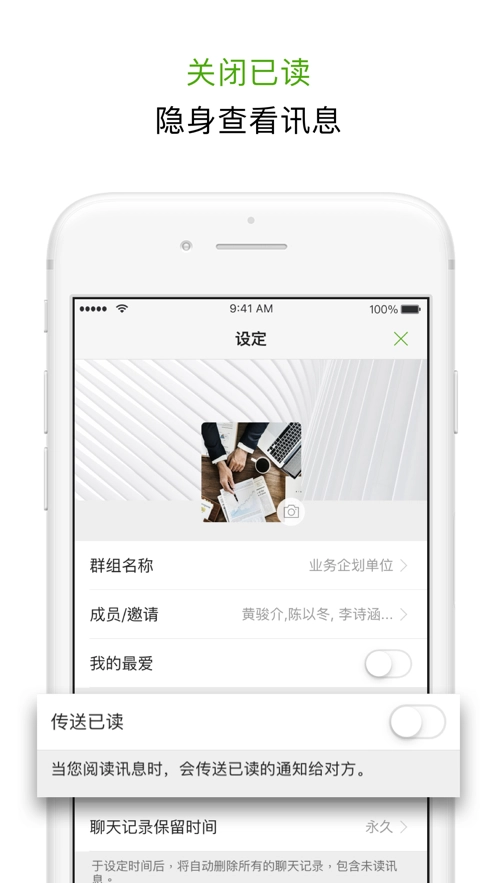 讯息保存时限:透过阅后即焚讯息、设定讯息保存时间,到期即删除聊天室的讯息记录。