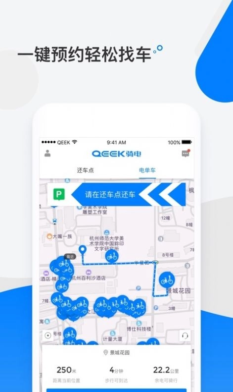 1.找车定位精准,打开软件即可快速定位到附近的电单车